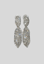 Brinco em strass e pendente oval.
