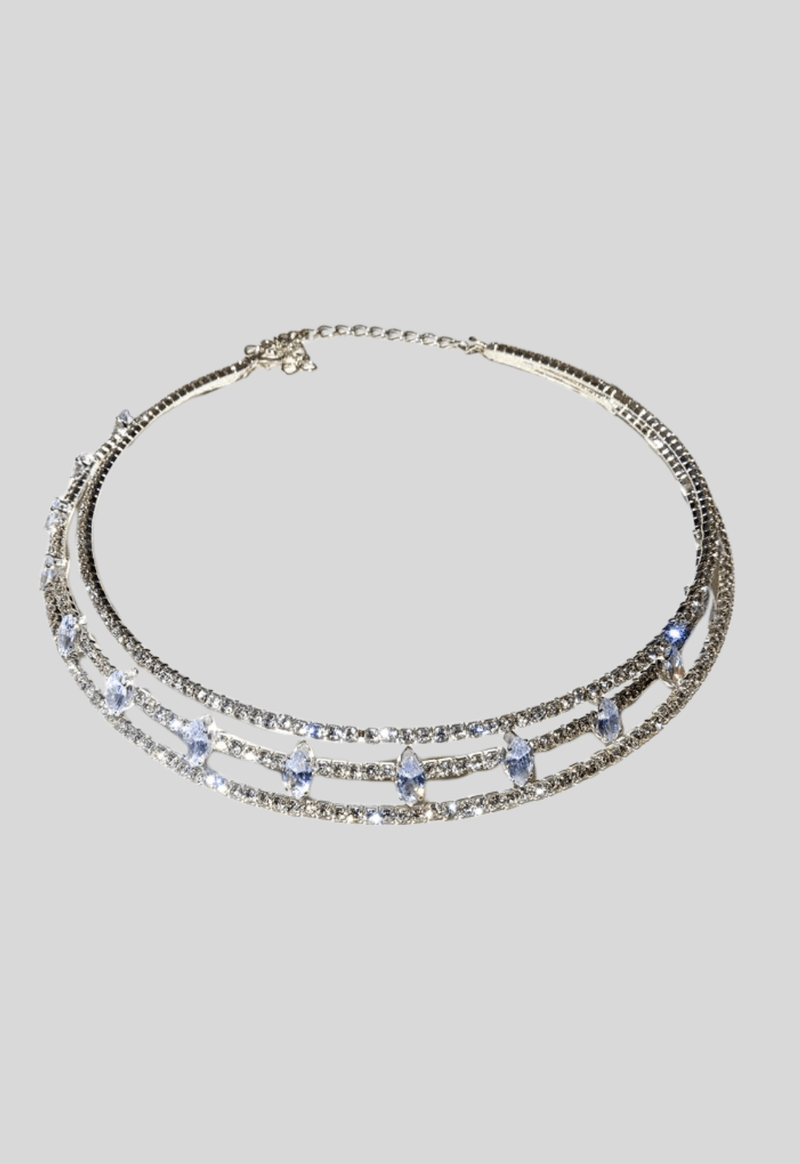 Choker com diversas camadas, estilo cravejado.