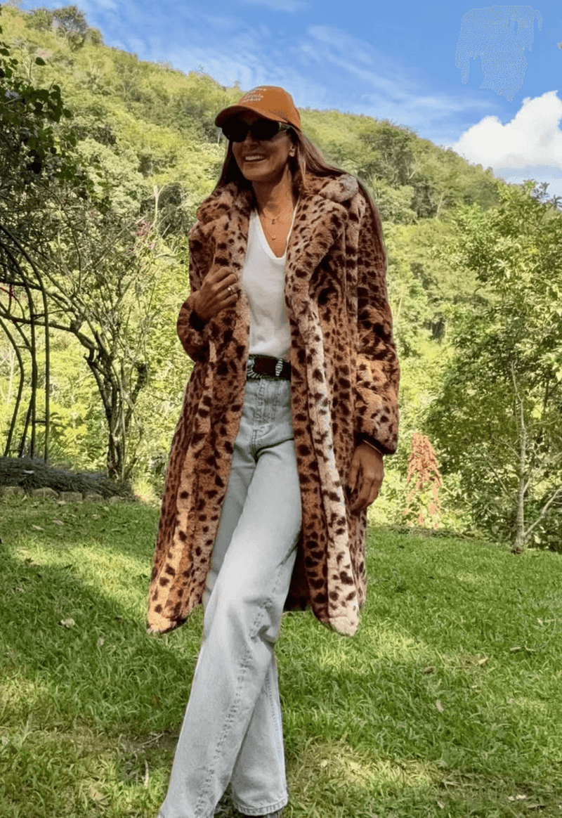 Sobretudo de pelo sintético em estampa animal print da marca Amissima.