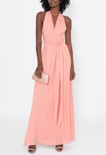 Vestido longo em tamanho único vestindo vários tamanhos. Possui amarração na cintura ajustável, podendo ser usado de diferentes formas, conforme fotos. Tecido encorpado.